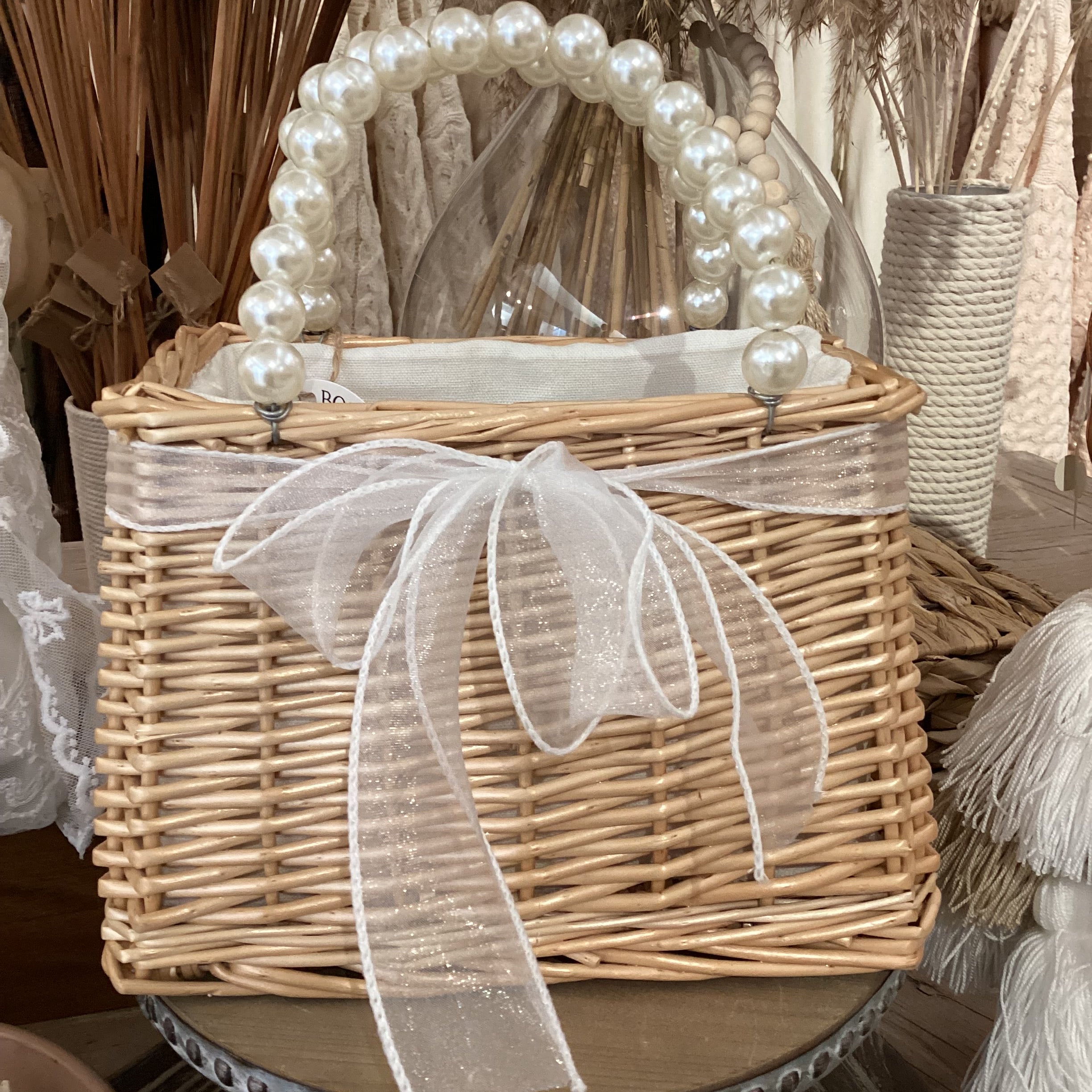 Pearl Handled Rattan Bag