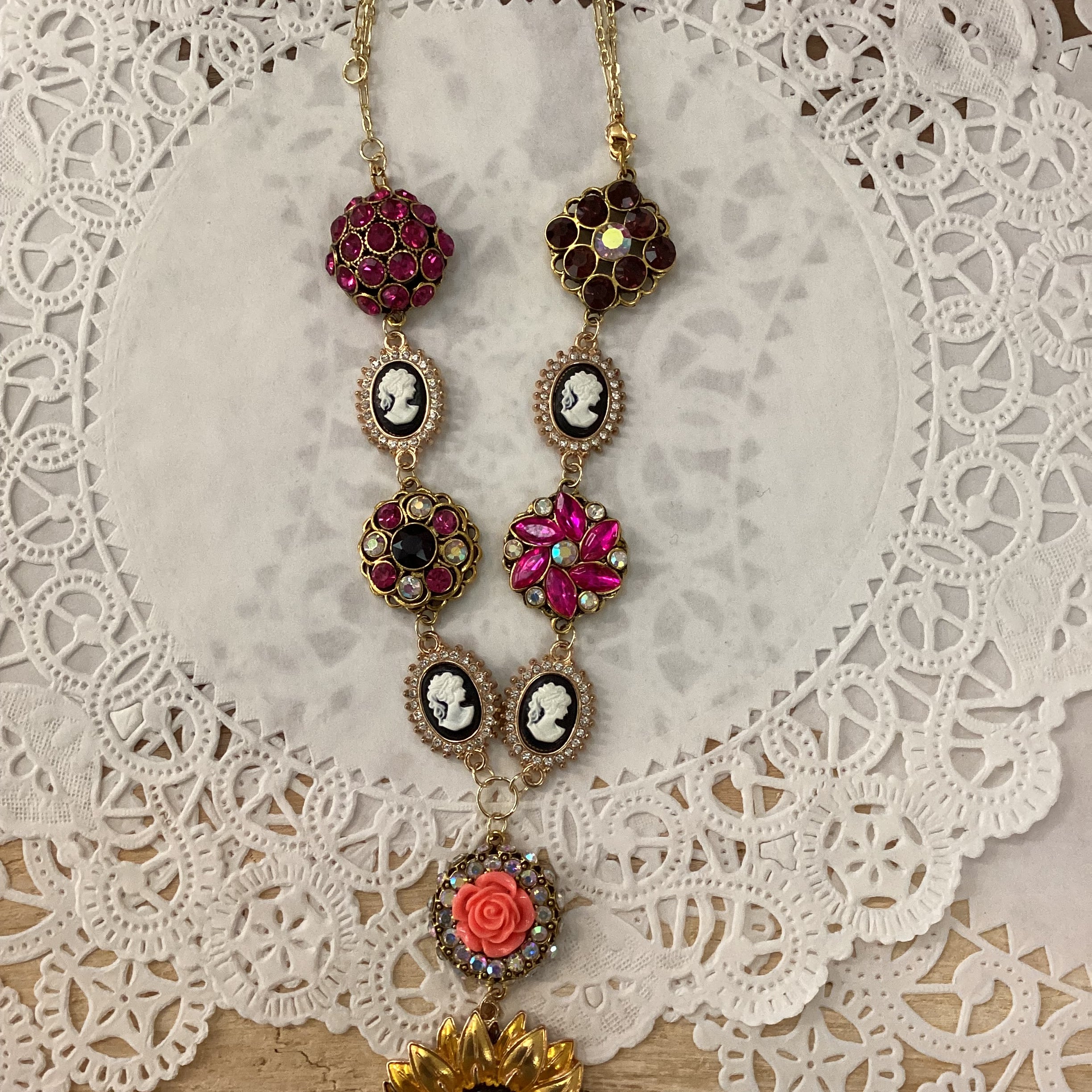 Handmade sunflower statement necklace