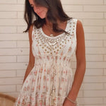 Exquisite cream dress with gold threading and handwork on this paisley dress in a soft rose color details . Very Boho dress styling. Hides bra strap. Maxi length on size 5’3 model wearing size small medium. Knee length
