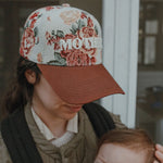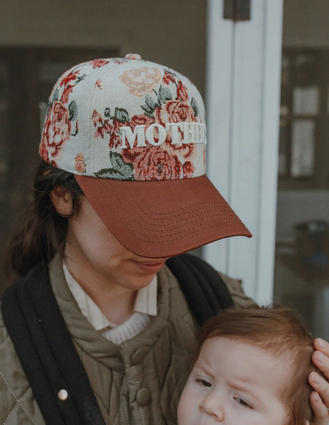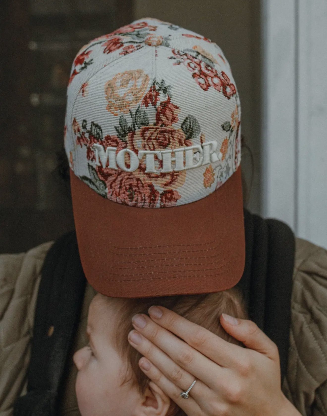Hey Mother! Embroidered floral hat with Mother detail on hat.